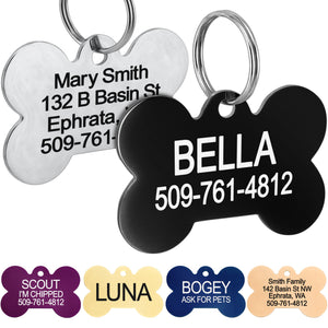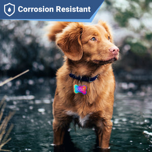 Our personalized, heart shaped dog ID tags made of beautiful solid brass offer double-sided engraving, with up to 6 lines of custom text, room for all of your dog's ID. The permanent engraving is clear and attractive . Available in 2 sizes for pets small and large. When it comes to durability and quality our 100% brass dog tags hold up to the most active dog.