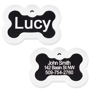 Available in several shapes and colors, all pet tags come with up to 4 lines of personalized ID or custom text and include split ring attachments. For personalization, the text can be the same or unique for each individual tag. If each tag in your order will be uniquely personalized please put "See Email" in the customization fields and send us an email at orders@gotags.com. A customer service representative will respond by email on how best to get us the information for the individualized tags.